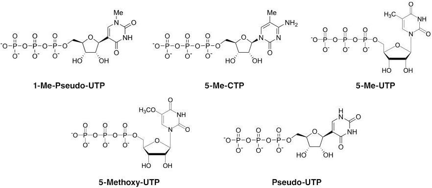mRNA合成にはシュードウリジン以外の修飾核酸も使われるようになってきており、ヤマサ醤油では素材例のような修飾核酸を提供しています。また、ご要望に応じ新たな修飾核酸もプロセス開発を含めご提供いたします。